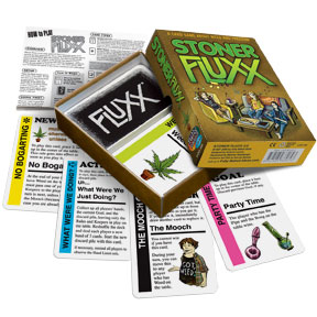 This game is so simple and such an easy “bored before class” game that there’s no surprise that it’s available in five languages, with a Christian Version, a Cthulhu Version, a Zombie Version, an Oz Version, a Pirate Version, a Jewish Version, an Alien Version, a Stoner Version… No, seriously, Stoner Fluxx is totally a thing.
